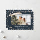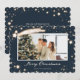 Elegante foto azul de Feliz Navidad con estrellas en un fondo azul oscuro adornadas con caída de nieve. Personaliza fácilmente esta tarjeta de vacaciones estrellada con tu foto, nombre de familia y texto.