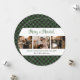Elegante Navidad de con manchas verdes recién casados con fondo de manto negro y verde con 3 fotos en el medio y un hermoso guión con letras a mano arriba. Personaliza fácilmente esta tarjeta de Navidades casados y alegres con tus imágenes, texto y el nombre de tu familia.