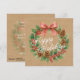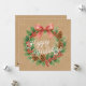 Esta hermosa tarjeta de vacaciones muestra elegantes acuarelas de una corona adornada con un arco rosa, pinecones, hojas huecas, bayas rojas y agujas de pino. Su elegante y rústico diseño capta la esencia de la temporada de vacaciones de diciembre y atrae a los que aprecian los ilustraciones artísticos. La tarjeta ofrece opciones de personalización que le permiten personalizarla con el nombre de su empresa, el nombre de su familia o los nombres individuales. Además, puede incluir un poema de bienvenida de temporada a medida en el frente, lo que lo convierte en una opción pensada para extender la alegría de las vacaciones.