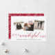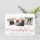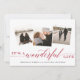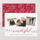 Elegante tarjeta de fotos de vacaciones cuenta con tres fotos cuadradas en un diseño de collage, con "es una vida maravillosa" sobre vibrante escritura de arándano rojo y letras en bloques. Personalice el saludo de su personalizado, su nombre y/o el año siguiente. Las tarjetas cambian a un fondo festivo de estampado botánico rojo y crema.