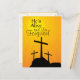 Inspiradora cita postal de Pascua personalizada tiene tres cruces en una colina con brillantes rayos solares dorados amarillos. El saludo se puede modificar.*