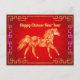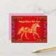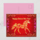 Nuestra estilizada postal de Año Nuevo Chino de Caballo Dorado captura la esencia del Año Nuevo Lunar con la foto de un caballo dorado impreso en una imagen como un Relieve metalizado en un fondo rojo de ráfagas de sol. Esta tarjeta postal es un regalo para los años venideros. Todo el texto es personalizable.