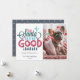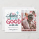 Tipografía de estilo retro de moda y audaz "Querida Santa Define Buena", tarjeta de fotografía de vacaciones. Características de la tarjeta, foto única en la parte delantera con tres líneas de texto de plantilla para mensaje, nombre y año. La parte posterior de la tarjeta se complementa con el patrón de puntos dibujados en blanco sobre fondo azul gris.