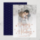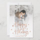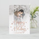 Esta sencilla y elegante tarjeta de fotos navideña cuenta con un moderno guión manuscrito falso rosa dorado que dice "Felices Fiestas", y muchas estrellas elegantes, con tu foto personal favorita que cubre todo el frente de la tarjeta.