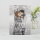 Esta sencilla y elegante tarjeta de fotografía navideña cuenta con un moderno guión escrito a mano en blanco que dice "Felices Fiestas", y un montón de estrellas elegantes, con su foto personal favorita cubriendo todo el frente de la tarjeta.