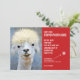 ¡Envíen risas esta temporada navideña con estas graciosas tarjetas de Navidades! Todos sabemos que "se supone" que debemos enviar tarjetas de fotos a la hora del Navidad - después de todo, es la práctica culturalmente aceptada. Bueno, estas tarjetas dicen, "Aquí está tu estúpida tarjeta de foto", e incluyen la foto de una llama bastante fea (pero totalmente linda a su manera). La tarjeta se puede comprar tal cual, o puedes reemplazar la foto con una de tus propias fotos. Esta tarjeta presenta un esquema de color simple de rojo y blanco, pero el texto y los colores de fondo se pueden personalizar a cualquier color que desee.