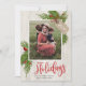 Utilice nuestra etiqueta de regalo verde foto de las tarjetas de vacaciones de la casa de campo con una foto para desear a sus amigos y familia una feliz temporada de vacaciones. Este diseño presenta un fondo de madera, una vegetación de cedro realista y bayas rojas. BONUS: El respaldo con patrones se puede quitar o cambiar a un color sólido. Vaya a la sección "Personalizar esta plantilla" y, a continuación, haga clic en "Hacer clic en el Personalizar más adelante" en la parte inferior. Para cambiar el patrón, pulse sobre la forma del ojo junto al nombre del patrón para activarlo o desactivarlo. Añade más fotos al dorso de tu tarjeta, así como texto adicional para crear tu propia carta de Navidades.