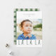 Elegante tipografía "fa la la la" en rústica carta de fotos de vacaciones verde. La parte posterior de la tarjeta presenta un patrón de recubrimiento de color verde con líneas de plantilla para el mensaje y los nombres de su personalizado.