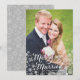 Muestra la foto de tu boda con estas tarjetas de vacaciones "recién casadas". Hace una gran tarjeta de navidades recién casados o anuncio de boda de invierno, con copos de nieve y la frase "Feliz y Casado".
