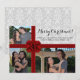 ¡Una forma bonita y creativa de mostrar tus tres fotos familiares para Navidades este año! Esta bonita caja de regalo falsa regalo estilo 2 caras Navidades planos tarjeta de saludo tiene un fondo blanco de damasco "papel envolvente" con una gran reverencia de festividad roja e imagen de cinta. Añade tus imágenes digitales para hacerlo todo tuyo. Todos los diseños Copyright © www.zazzle.com/ChristmasCardShop*