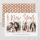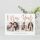 Celebre el año nuevo con esta moderna y moda tarjeta de collage de dos fotos con un falso rosa de purpurina de oro y un moderno tipo de letra de guión. Tenga en cuenta que el falso purpurina no es real. Disponible en colores y formatos de fotos adicionales.
