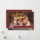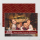 Un moderno diseño de tarjetas de Navidades de fotografía con una foto familiar llenando la cara de la tarjeta. Arte moderno divertido decoración de árbol de Navidad con banda de texto rojo oscuro para tus palabras.