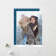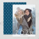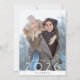 Esta tarjeta plana de bienvenida de Año Nuevo ofrece un fotograma completo para cubrir toda la parte delantera de la tarjeta. El año 2024 aparece en un gran texto blanco al final de la foto. La parte trasera ofrece un patrón blanco de copos de nieve en azul oscuro.