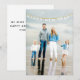 ¡Celebremos el Año Nuevo con una tarjeta de foto familiar! Este diseño presenta una falsa pancarta purpurina que dice "Feliz Año Nuevo". Se puede añadir un saludo al fondo. Los colores de fuente y fondo se pueden cambiar en la parte posterior.