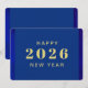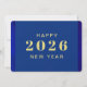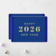 Tarjeta navideña feliz de Año Nuevo con colores azules con texto dorado. Ideal para los que buscan tarjetas de vacaciones para celebrar el año nuevo. Bonitos colores azules. texto personalizado en la parte delantera y trasera de la tarjeta. Añade tu saludo personal al dorso. Utilice la plantilla para crear su propia tarjeta de felicitación de personalizado Feliz Año Nuevo.