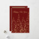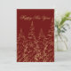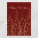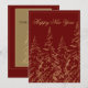 Feliz año nuevo. Elegante fondo rojo con falsos pinos dorados en luces de hadas. Añade tu propio mensaje en la espalda para tu familia y amigos. Esto hace una gran tarjeta comercial también.
