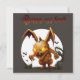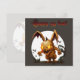 Esta tarjeta de Pascua es bastante peculiar y humorística, con un conejito de aspecto zombi que parece haber salido directamente de una película de terror. Tiene ojos amarillos y una risa diabólica. El fondo de la carta es de color oscuro, lo que refuerza la atmósfera aterradora de la escena. Encima del conejito, la frase "Caza de huevos feliz" está escrita en letras mayúsculas, con un tipo de letra bastante divertido. A pesar del lado ligeramente morboso del conejito, el mensaje sigue siendo divertido y recuerda al espíritu de la tradicional caza de huevos en Pascua.