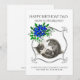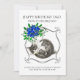 Una hermosa tarjeta de feliz cumpleaños para papá del gato, con un gato enrollado en un borde floral. El texto humorístico dice: "Te amé desde el momento en que te vi y luego me llevaste a casa".