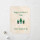 Una tarjeta perfecta para que los gemelos den a su madre el día de la madre. Un fondo neutro con textura sutil. Niños gemelos y su madre coordinando el tipo de letra verde.