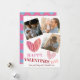 Sencilla y moderna, esta elegante plantilla incluye 3 fotos con Feliz Día de San Valentín en texto grande y 2 bonitos corazones texturados. Por el contrario, el reverso tiene un patrón cardíaco de bonito sobre un fondo rosa exuberante. Fácil de personalizar con tus propias fotos.