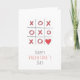 Esta tarjeta plegable está impresa con un diseño de Tic-Tac-Toe con temática de San Valentín y un mensaje con tipo de "Feliz Día de San Valentín".