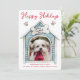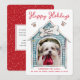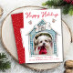 Esta divertida tarjeta Happy Holidays es perfecta para veterinarios, mangos de perros, tiendas de mascotas para mandar a clientes, vendedores y más. Presenta "Felices Fiestas" y un lindo marco de posada alrededor de la foto mascota. Su nombre comercial e información están a continuación. Back of card presenta su mensaje de vacaciones personalizado. Celebra la temporada con esta feliz tarjeta de vacaciones de Cherry Lane Designs!
