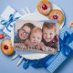 Esta elegante y moderna tarjeta fotográfica de Hanukkah presenta una elegante tipografía blanca sobre una foto única y horizontal de sangre completa. El saludo al frente dice "Feliz Hanukkah". Este diseño se adapta a una sola foto horizontal en la parte delantera de la tarjeta. En el reverso se encuentra un sencillo patrón de rayas diagonales azules y blancas que se puede quitar o personalizar. También puede añadir otra foto o texto a la parte posterior seleccionando "diseño personalizar más adelante".
