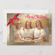 Alegría al mundo. Feliz Navidad. Tarjeta de Navidades Religiosos Bellas Artes de personalizable con una bella pintura vintage de Tres Navidades de ángeles y de fondo de Relieve metalizado dorado. Tarjetas de correspondencia y regalos disponibles en la categoría Navidades y Año Nuevo / Bella Artes de nuestra tienda.