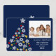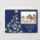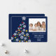Envíe sus cálidos deseos de vacaciones con esta tarjeta personalizada de fotos navideñas con un fondo azul festivo y un deslumbrante diseño de árbol navideño hecho de copos de nieve blancos, estrellas doradas y adornos coloridos. El diseño incluye espacio para tu foto familiar favorita junto con un saludo de vacaciones personalizado, nombre de familia y año, creando un sentido deseo de compartir con sus seres queridos. Perfecto para saludos de temporada, tarjetas de vacaciones, envíos de Navidades familiares y celebraciones de invierno, esta tarjeta fotográfica personalizado combina el estilo moderno con el encanto tradicional de las vacaciones para una manera memorable de difundir alegría.