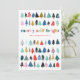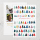 Esta tarjeta de vacaciones cuenta con bonitos árboles dibujados a mano con colores vivos en rojo, rosa, azul, turquesa y oro. La tarjeta de fotos de la parte trasera de la festividad del personalizable tiene un lugar para 4 fotos y un mensaje más largo.