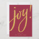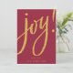 Oro JOY! con fondo rojo, y caída de la nieve en la espalda hace de esta tarjeta de Navidad una declaración de alegres deseos para la temporada.