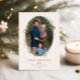 Festividad Festividad Foliage Botánico Marco Oval, tarjeta de foto plana. Características, tipografía rústica de color rojo y respaldo de color sólido.