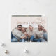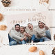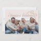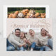 Tarjeta de plantilla de fotos de Navidades íntimos con un texto que dice "vacaciones más felices". Añade fotos de tu familia en esta tarjeta de marco de arco beige. Hay un ilustracion de arco.