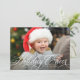 "Alegría de vacaciones" en un guión elegante se sienta encima de una sola foto horizontal. Esta tarjeta clásica es la manera perfecta de enviar saludos de Navidad a amigos y familiares. La espalda es una manta verde de caza festiva.