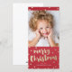 Una divertida y caprichosa tarjeta de fotos navideña con letras a mano Merry Christmas in gold sobre un fondo rojo textural con puntos de confeti alrededor de una foto de un cliente. Parte de la colección de tierras maravillosas de Confetti de Stacey Meacham. Encontrar accesorios que coincidan y más opciones de color aquí: https://www.zazzle.com/collections/confetti_wonderland-119260260182491022