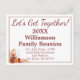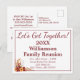 Anunciemos fácilmente su reunión familiar con esta hermosa Flor de Otoño juntémonos con la postal. Esta cómoda y elegante tarjeta presenta un encantador diseño floral, perfecto para que todos sepan marcar sus calendarios. Simplemente personalizar los detalles con tu fecha y ubicación de reunión, y después envíalo por correo, ¡no se necesita ningún sobre!
