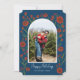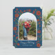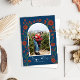 Un fresco fondo azul real y flores silvestres rojas le dan a esta tarjeta de vacaciones de fotos abovedada una moderna atmósfera bohemia con un toque de núcleo de cabaña. Añade tu foto de orientación vertical y personaliza el texto para personalizar esta rica tarjeta de Navidades florales e impresiona tu lista de tarjetas de vacaciones con tu estilo de moda.