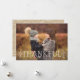¡Desearía a los seres queridos un feliz Día de Acción de Gracias con nuestras tarjetas de fotos de Acción de Gracias! Las tarjetas de fotos de Acción de Gracias muestran tu foto favorita con la palabra "Agradecimiento" en un encantador superpuesto de tipografía complementado con hojas dibujadas a mano. El reverso presenta un elegante patrón de hojas con un fondo de color beige almendro.