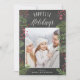 Festividad de la tarjeta fotográfica de vacaciones incluye bayas de color de agua pintadas, hojas y ramas, rodeando tu foto favorita en un fondo de pizarra gris cepillado. "Festividades más felices" aparece en la parte superior en la tipografía con letras blancas y bloques de escritura. Personalice el saludo de su personalizado y los nombres que aparecen en la parte inferior.