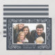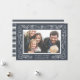 Un intrincado borde botánico en blanco nevado sobre un fondo azul marino gris enmarca tu foto horizontal favorita en esta moda y elegante tarjeta de vacaciones. Personalice nuestra tarjeta Snowy Foliage con su propio saludo personalizado (que se muestra con "Deseos de Navidad" y su nombre y año familiar.