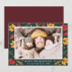 Esta tarjeta de saludo presenta un bonito patrón de follaje otoñal con una foto familiar personalizada. Puede personalizar los detalles del texto y los colores.