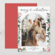 Esta moderna tarjeta de vacaciones para Navidades incluye su foto favorita de vacaciones en forma de arco decorada con elegantes productos botánicos de invierno. Para realizar cambios avanzados, seleccione Personalizar -> Editar usando la herramienta Diseño.