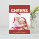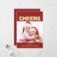 Tu foto favorita está acentuada con "Cheers" escrito en luces de marquesina vintage en un fondo rojo arándano. Se imprime en la tarjeta en forma de etiqueta, de modo que se puede atar fácilmente con una proa de cinta y enviarla por correo, o atarla a una botella, una bolsa de regalo o un regalo.