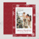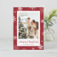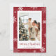 Tarjeta de Navidades de fotos de copos de nieve con copos de nieve en un fondo rojo y con nieve. Personalice fácilmente esta tarjeta de Navidades de fotos con su foto y nombre de familia.