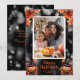 Foto de Halloween con lámparas jack-o' con gorras negros y una foto. Personaliza fácilmente esta hermosa tarjeta de Halloween con tu foto, el nombre de la familia y el texto.