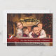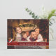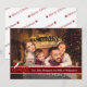 Un moderno diseño de tarjetas de Navidades de fotografía con una foto familiar llenando la cara de la tarjeta. Divertida Feliz Navidad con un sombrero de Papá Noel y un bastón de caramelo colgado. Banda de texto rojo oscuro para sus nombres u otras palabras.