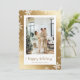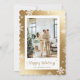 Foto de copo de nieve dorado lindo Happy Holidays con copos de nieve en un fondo metálico de oro. Personaliza fácilmente esta tarjeta de vacaciones de fotos doradas con tu foto y texto.
