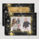 Copos de nieve dorados en un fondo de moda. Esta es una tarjeta de felicitación de temporada. Añade tus fotos familiares favoritas para personalizar esta belleza. Cambiar los nombres y el año. Tan simple, pero moda.