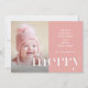 La hermosa tarjeta de Navidades presenta un tipo alegre en negrita en un fondo rosa pastel con un simple mensaje de vacaciones y foto de tipografía blanca.