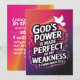 Descubra la belleza de confiar en la fuerza de Dios con esta vibrante y fortalecedora tarjeta de afirmación. Diseñada para inspirar esperanza y fe, esta carta es un perfecto recordatorio del poder transformador de Dios en nuestras vidas. Delante: Boleramente declara la verdad de 2 corintios 12:9—"El poder de Dios se hizo perfecto en mi debilidad." El diseño dinámico presenta una paloma brillante y gradientes radiantes de color rosa, naranja y morado, que representan la fuerza divina que nos eleva en nuestros momentos de necesidad. Afirma la promesa de Isaías 40:31 con las palabras: "Pido mi esperanza en el Señor, y Él renueva mi fuerza. Voy a volar sobre alas como águilas, correr y no cansarme, y caminar y no desmayarme". Complementado con un fondo de gradiente radiante y delicados motivos de las alas del águila, este diseño simboliza la renovación, la resistencia y la confianza en el poder interminable de Dios. Perfecto para: El estímulo personal en tiempos difíciles. Compartir las promesas de Dios con un ser querido. Inspiración diaria para profundizar la fe y la confianza en Él. Guarda esta carta como un recordatorio diario de la fuerza que Dios le da y Su poder para llevarte a través de cada desafío.